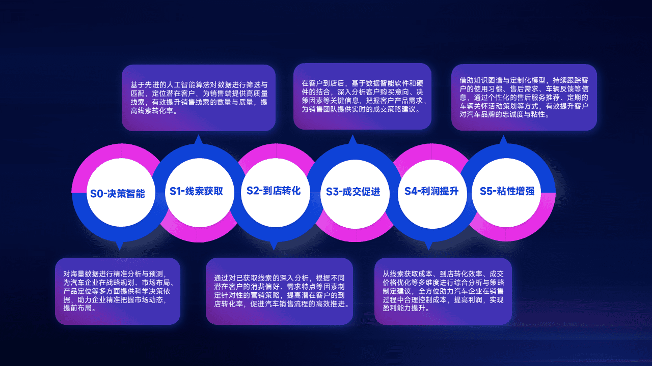 通过拓宽潜在客户来源、、优化线索分配并提高到店转化率,,以增强销售效率。。。。同时,,利用线索数据不断优化分析模型,,,有效提升转化率,,扩大营销影响力。。。。